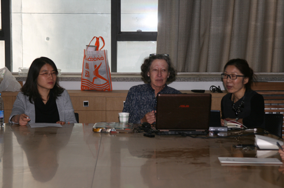 随后,克里斯蒂娜•古斯教授回答了部分研究生的提问,并就相关问题与研究生进行了深入的交流和探讨。克里斯蒂娜•古斯教授毕业于哈佛大学,曾在哈佛、普林斯顿、伯克利、斯坦福等大学任教,是著名的亚洲设计史专家,主要研究日本古代设计史及中国设计史,在研究中国设计史时经常引用《天工开物》、《考工记》等设计文献,她出版有Art, Tea and Industry: Masuda Takashi and the Mitsui Circle (1993), The Art of Edo Japan: the Artist and the City (1996), and Longfellow’s Tattoos: Tourism, Collecting and Japan (2004)等一系列著作,其中The Art of Edo Japan: the Artist and the City (1996),一书被翻译成了中文由中国建筑工业出版社出版。