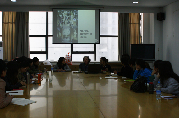 克里斯蒂娜•古斯教授简单介绍了她所任教的英国皇家艺术学院以及维多利亚博物馆的基本情况,并就英国皇家艺术学院研究生教育的规模、研究生教学方式和部分研究课题做了说明。接着古斯教授以日常生活中常见的“针”为切入点,探讨了包括针的产生、针的制造工艺以及针在生活中的运用等内容,阐述了自己的一些理论思考以及设计史的研究方法。克里斯蒂娜•古斯教授认为,许多研究都是从一些很微小的事情着手,以小见大,从而激发一系列设计理念的产生和变革,她鼓励大家从细微处着手,善于观察,坚持理论与实践相结合,激发自己的设计创新。