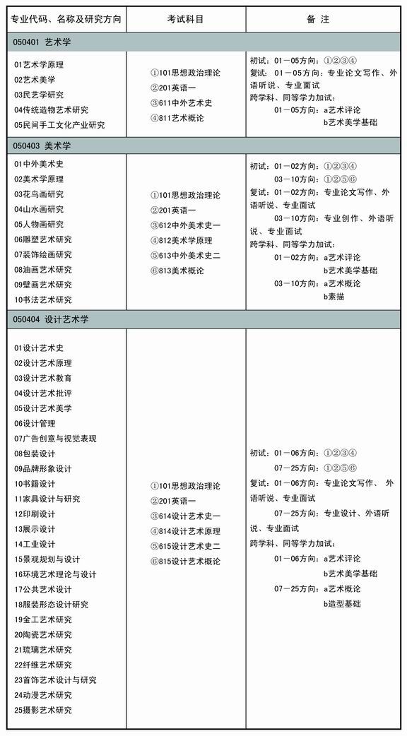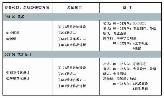 全日制艺术硕士(MFA)研究生招生专业方向和考试科目