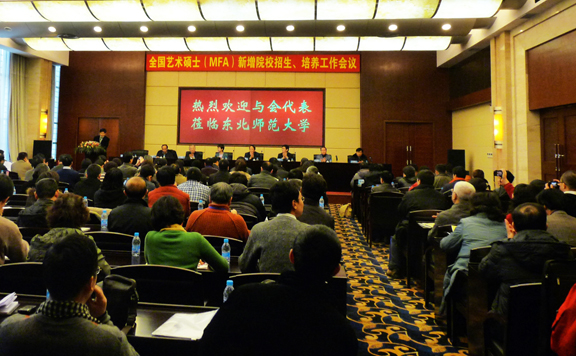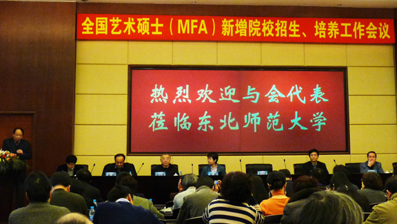 东北师范大学校长史宁中和吉林省教育厅学位办领导首先致欢迎辞,教育部学生司陈瑞武处长、国务院学位办陆敏副处长到会并分别讲话。两位处长传达了刘延东国务委员、教育部袁贵仁部长、陈希副部长在今年的多个会议和专题研究中所做出的关于专业学位教育的重要指示,然后,针对全国艺术硕士(MFA)新增院校招生、培养工作提出指导性意见。全国艺术硕士专业学位教育指导委员会艺术设计分委会主任杨永善教授、美术分委会主任曹意强教授及艺术硕士教指委秘书长丁凡等分别通报艺术硕士专业学位教育总体情况,详细讲解艺术硕士招生、培养等方面的工作要点,并就与会艺术硕士(MFA)新增院校提出的相关问题进行了全面解答。全国艺术硕士(MFA)68个新增院校的与会人员认真学习艺术硕士招生培养等方面内容、积极交流培养思路。与会代表们一致认为这是一次解疑释惑、明确方向、承前启后的会议,必将为推动我国艺术硕士招生、培养工作产生积极的影响。会议由全国艺术硕士专业学位教育指导委员会秘书宋慧文主持。