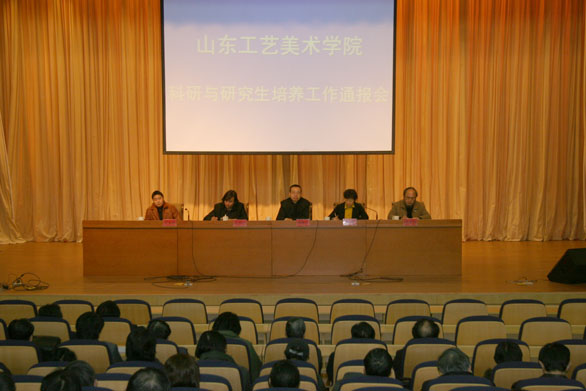 院长潘鲁生作重要讲话,他指出,近年来,学校在科研、学科建设和研究生培养上取得了一定成绩:学校高度重视科研工作,科研实力不断提升,科研立项层次稳步提升;学校增强社会服务意识,推动文化创意产业发展,依托国家有利政策,在为文化创意产业服务和为社会发展服务等方面取得了丰硕成果,如十一运会的相关设计、世博会山东馆的设计等,成效斐然;学校加强学科建设,积极发展研究生教育,硕士研究生规模持续增长、规章制度不断健全。