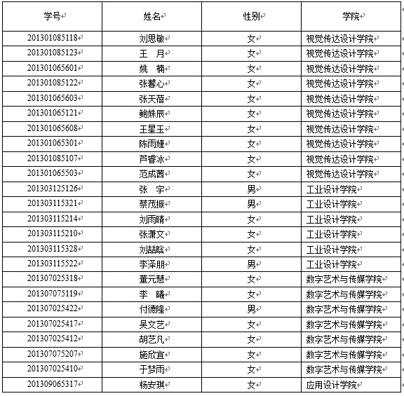 赴台湾大同大学交流学习的学生名单如下: