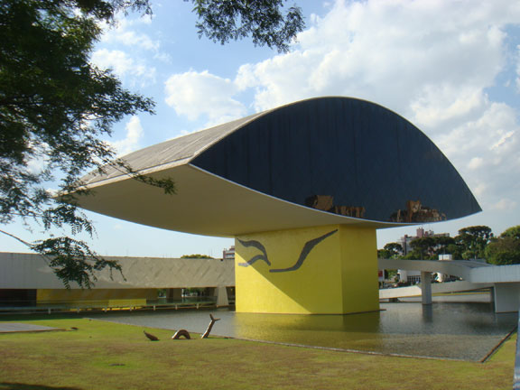 奥斯卡尼迈耶博物馆原有建筑一直作为政府某些部门的办公地。2002年,由巴西著名建筑师奥斯卡尼迈耶在原有建筑基础上,根据巴拉那地区一种南洋杉树的剪影增建设计而成博物馆。由于增建部分的建筑类似眼睛的形状,因此被更多人称为“眼睛”。建筑师奥斯卡尼迈耶设计了整个项目,作为回报,政府以他的名字命名博物馆。