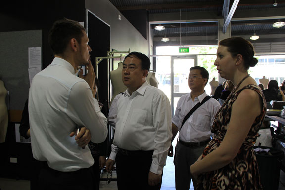 威尼斯官网公共课教学部主任徐思民、工会主席祁建萍、后勤管理处处长毕剑翎、服装学院党总支书记来罗军、国际交流与合作处郭睿一同参加了交流座谈和参观。