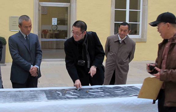 第四届中欧文化对话全体学者专家在王瑞青作品前合影