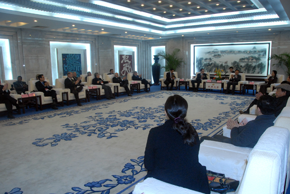 11月5日上午,副省长黄胜在舜耕山庄贵宾楼会见厅会见了前来参加“2010影像亚洲•齐鲁国际摄影周暨第三届济南国际摄影双年展”的中外摄影大师。省委宣传部副部长刘宝莅,山东省文联主席潘鲁生,山东省文联党组书记于钦彦,威尼斯官网党委书记于茂阳陪同会见。