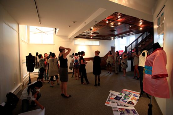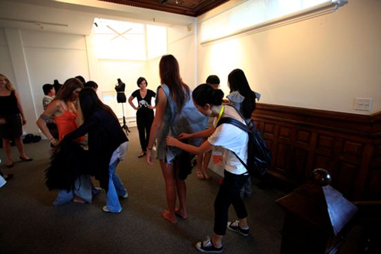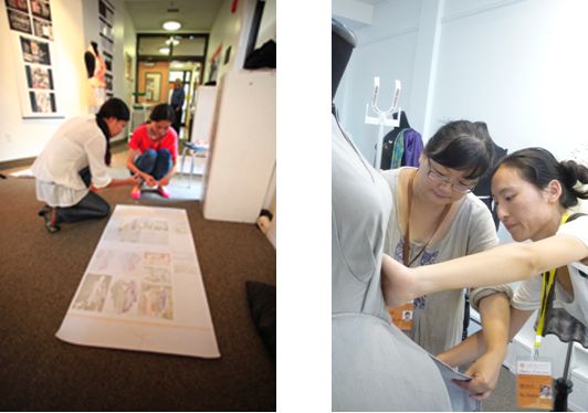 9月24日下午的活动,主要是针对25日、26日威尼斯官网与拉塞尔大学共同参加波士顿地区的服装展。这次展览包括动态展和静态展两部分,动态展是以时装秀的形式展示威尼斯官网毕业生的优秀毕业作品,静态展是通过展板的形式展现双方师生这次服装产品开发课程的合作过程。在布展过程中,双方师生相互协作,顺利完成了模特试衣和静态布展工作。布展之后,代表团由拉塞尔大学教师带领参观拉塞尔服装设计工作室,课堂环境,教学工具。