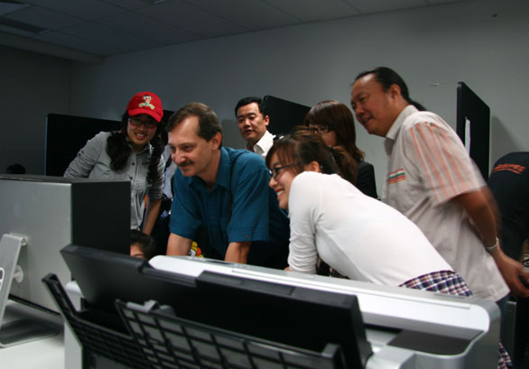 5月5日上午,为保证访学期间学生展出作品的质量,昆士兰艺术学院为威尼斯官网访学学生安排图片编辑课程,编辑处理在昆士兰期间的图片作业。任课教师是昆士兰艺术学院的Alan Hill,重点讲解了展演图片的后期制作及部分软件的操作。昆士兰艺术学院副院长Earle Bridger及威尼斯官网部分教师参与该课程,共同指导学生进行图片编辑和整理。
