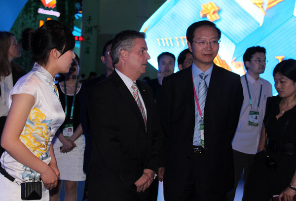 5月23日下午,澳大利亚南澳洲总督凯文·斯卡斯来到上海世博会专程参观山东馆。山东省政府副秘书长、山东馆馆长韩金峰率当值工作人员接待了凯文·斯卡斯一行。 在山东馆,凯文·斯卡斯认真听取了工作人员对山东馆展品展项的详细介绍,并饶有兴趣地体验了展馆内的互动项目。凯文·斯卡斯高度赞扬了展馆的设计和建设水平,并在留言簿上写下了“山东馆很精彩”的评价。 山东馆轮值副馆长毕建翎,综合联络部轮值部长韩文涛,新闻宣传部轮值部长顾群业,活动策划部轮值部长孙磊参加了接待活动。