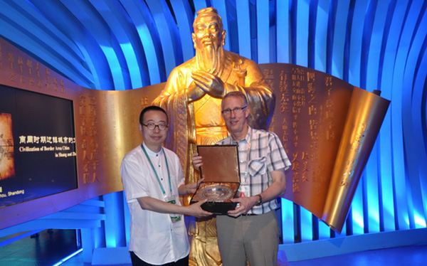 潘鲁生院长代表山东馆向奥拉•海格姆赠送了纪念品,双方就木制工艺文化进行了深入交流。