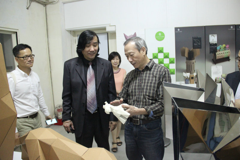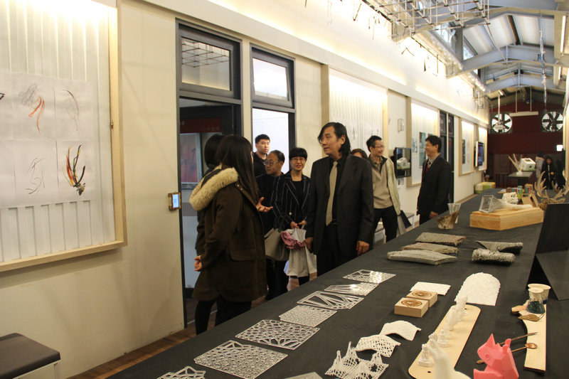 代表团一行参观了云林科技大学全国创意设计专案研究发展中心和实验空间。发展中心由设计学院运行管理,主要负责校园文创产品开发,根据市场需求组建设计团队,并使学生在参与设计过程中对设计策略、设计技巧与设计呈现有所认识、有所实践,并了解品牌形象策划的重要性和产品的衍生价值,扎实于设计的基础能力和观念设立。实验空间包括木工工坊、涂装工坊、金工工坊、数位工坊和工艺工坊,各工坊即实验室由专人管理、辅助工艺实现,在承接专业课程实践教学的同时对校外开放,承接社会项目、开展社会培训。工坊实行预约制,由学生提前网上预约后刷手机二维码进入,二维码可以进行后台大数据统计分析,分析结果可以反馈教学。