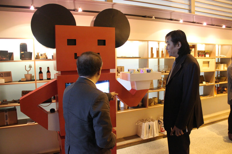 其四,教学成果的快速转化。设计艺术、特别是文创产品设计,密切根植于特定区域历史文脉,又服务于区域经济。教学成果是否被快速转化与应用,成为评价设计教学体系成功与否的重要指标。在访问三所高校的过程中,能感受到台湾设计院校对教学成果快速转化的强烈意愿与行动力;当然,这与台湾地区“高校—企业—生产—销售”等环节所搭建的完整密切的文创生态圈密不可分。以云林科技大学设计学院为例:该校的创意工场除具备实验室的功能外,还集中展示了大量已经批量生产,快速转化的文创产品,成果丰硕,成绩斐然。另一方面,台湾工艺研究发展中心、松山文创园区等具备商业属性的文化园区,也会定期邀请相关高校举办设计作品展,设计推荐会等活动,促进教学成果的快速转化。