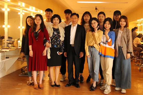 来宾还参观了妆扮设计专业的教学空间和部分学生作品,并与学生进行了亲切交流。