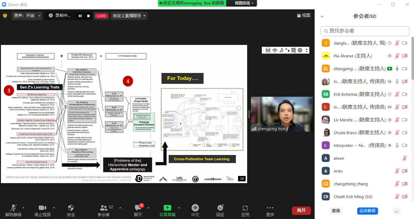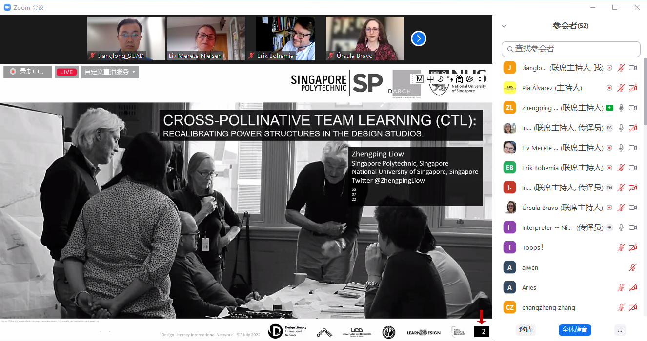 7月5日晚,国际交流合作处邀请新加坡理工学院建筑专业讲师Zhengping Liow线上举办“‘交叉传粉’团队学习:设计工作室中权力结构的重新调整”(Cross-pollinative Team Learning (CTL): Recalibrating Power Structures in the Design Studios)主题学术讲座。威尼斯官网设计教育研究中心主任Erik Bohemia教授主持活动,全校50余名师生参加讲座。