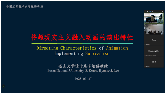 李炫錫教授讲授了“将超现实主义融入动画的演出特性”专题,详细介绍了什么是超现实主义,介绍了超现实主义流派的代表人物,安德烈·布勒东、萨尔瓦多·达利、勒内·马格利特。列举了超现实主义的绘画、电影、动画艺术作品并对超现实主义动画提出了自己的观点。所谓超现实主义,是指人的精神世界、生与死、实际与虚拟、过去与未来、现实与梦想等相反的东西同时存在的地方开始的。动画借用了超现实主义的置换法(dépaysement)、移画印花法(decalcomanie)、拼贴艺术(collage)等画风,可以有更加立体、多样的表现。超现实主义动画片以高艺术性的作品制作延续着超现实主义作风,尝试着通过更加多种奇特方法表现超现实主义所追求的惊异感觉。