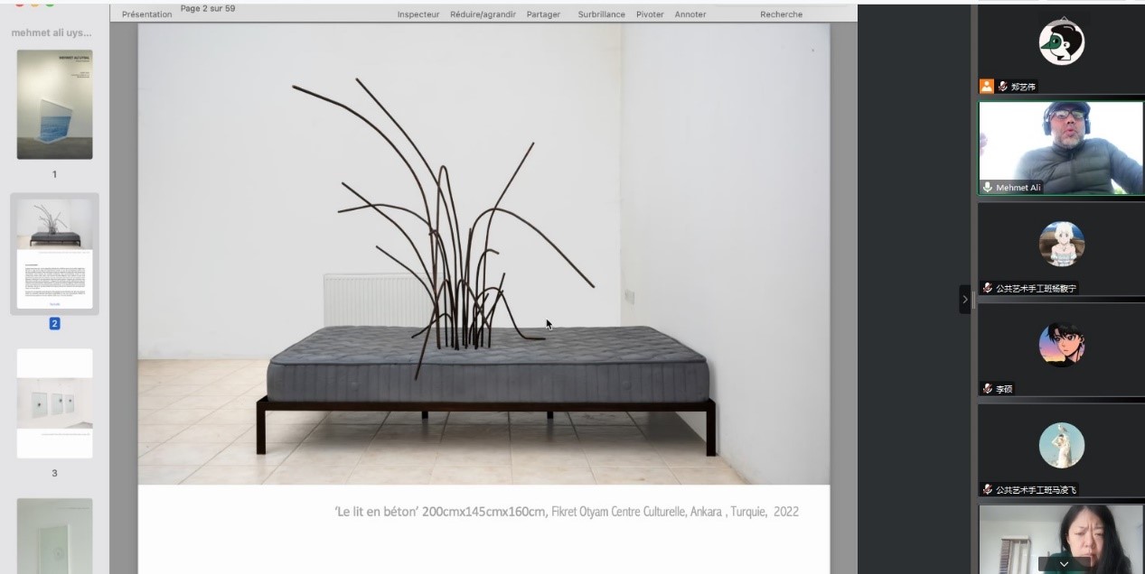 《圆雕形态与表达》中外联合课程打破传统泥塑临摹基础课的教学模式,采用课题研讨式教学和项目式教学相结合的教学模式,立足当代公共艺术专业空间造型需求,以中国传统素材和当代丰富多彩的空间造型方式相融合,强调培养学生的创造力意识和行动能力。课程由1位中方教师、1位当代知名艺术家和1位策展人共同组成教学团队。课程策划历时近一年时间,初期由现代手工艺术学院教师郑艺伟与当代艺术家兼策展人赵端共同设计教学内容和选择联络当代公共艺术空间造型领域知名艺术家。本次聘请的艺术家为土耳其裔公共艺术家Mehmet Ali Uysal博士,教学团队经过多次线上会议完成整理教学物料以及内容流程导图。