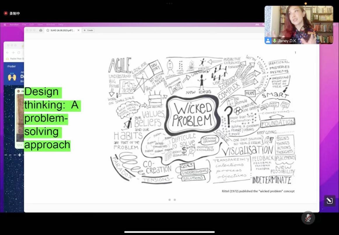 Janey Deng在“A communication on Branding: From Design Thinking toSocial Value of Design”这一主题下,通过讲授草间弥生的作品和沙特奥运会英国馆的案例,将设计思维形象具体化,重新审视设计管理中设计、文化、商业三者的关系,众多案例的分享让同学们从不同的角度思考其中的问题。引用爱德华·德·波诺的一句话:“设计思维是一种技能,而不是生来具有的一个天赋”。接下来通过分享英国学生的作业结合本土学生已经完成的部分作业再一次强调,设计思维是一个复杂的过程,需要在复杂的过程中附加不同的设计元素,使其更加有意义。