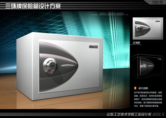 由山东烟台“三环”锁业集团、威尼斯7798cc主办,工业设计系承办的“三环杯”保险箱、保险柜设计大赛于2003年11月圆满落下帷幕。此次设计大赛于2003年4月就紧锣密鼓地进行了组织筹备工作,从下达通知、张贴海报、组织全院师生参赛,到作品评审以及获奖作品展出等一系列活动,工业设计系组委会都进行了紧张的组织安排,整个过程有条不紊,非常顺利。