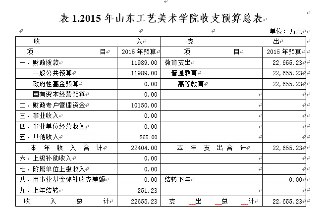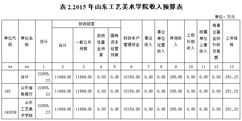 2015年收入预算为22404万元,其中财政拨款11989万元,财政专户管理资金10150万元,其他收入265万元。上年结转251.23万元。
