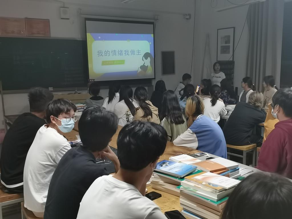本次班会以班级为单位开展,由各班代理班主任主持,以“我的情绪我做主”为主题,内容涵盖了学生常见的心理问题、心理对人的影响、如何摆脱不良心理情绪、人生价值导航四个模块,通过理论讲解、生动案例、互动交流等方式传播心理健康的知识和理念,营造积极健康的学习生活环境,培养同学们形成良好的心理品质和自尊、自爱、自律、自强的优良品格,增强大学生克服困难、经受考验、承受挫折的能力。