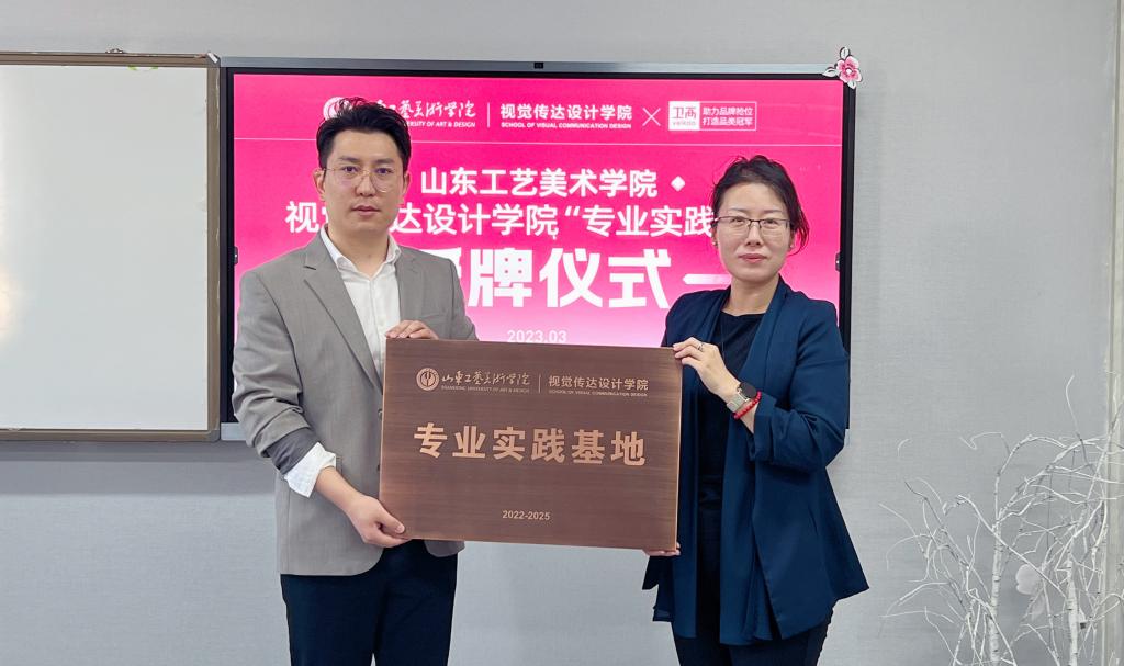 3月10日上午,视觉传达设计学院邀请优秀校友单位卫高品牌策划设计公司总经理辛高卫进入课堂进行专业讲座,并举行专业实践基地授牌仪式。视觉传达设计学院院长王晓峰,党总支书记林波,副院长张培源,教研室张瑞、李永慧老师共同出席仪式。