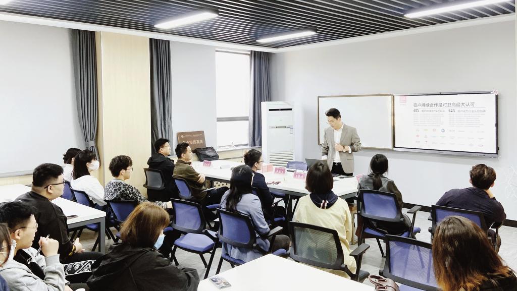 辛高卫为同学们做了题为《设计的商业价值》讲座分享。课程通过详实案例结合自身的多年经历、经验,为同学们现身说法,助力同学们更好走向专业就业之路。