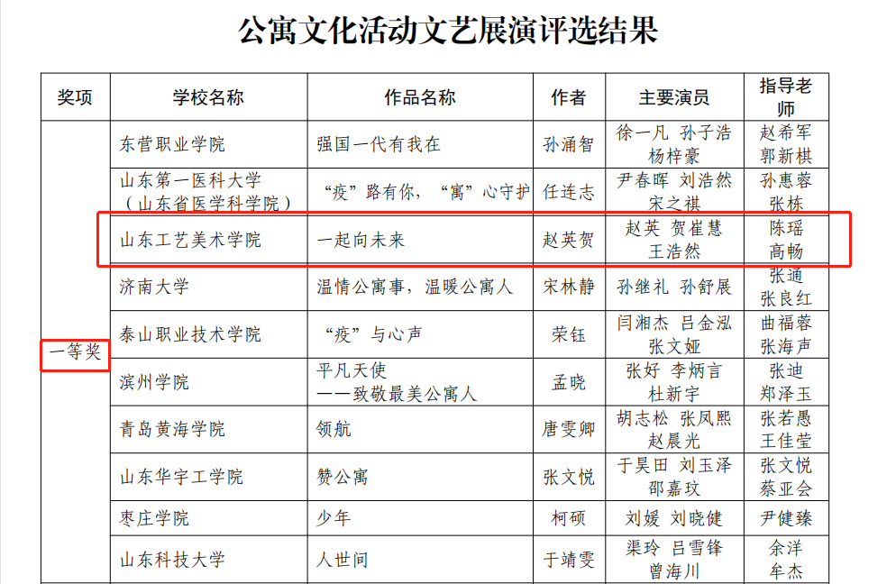 近日,山东省教育厅发布《关于公布2022年高校“公寓的故事”主题系列活动评选结果的公示》,学校党委学工部(处)推荐的视觉传达设计学院师生作品在公寓文化活动文艺展演评选中喜获一等奖一项、三等奖一项。