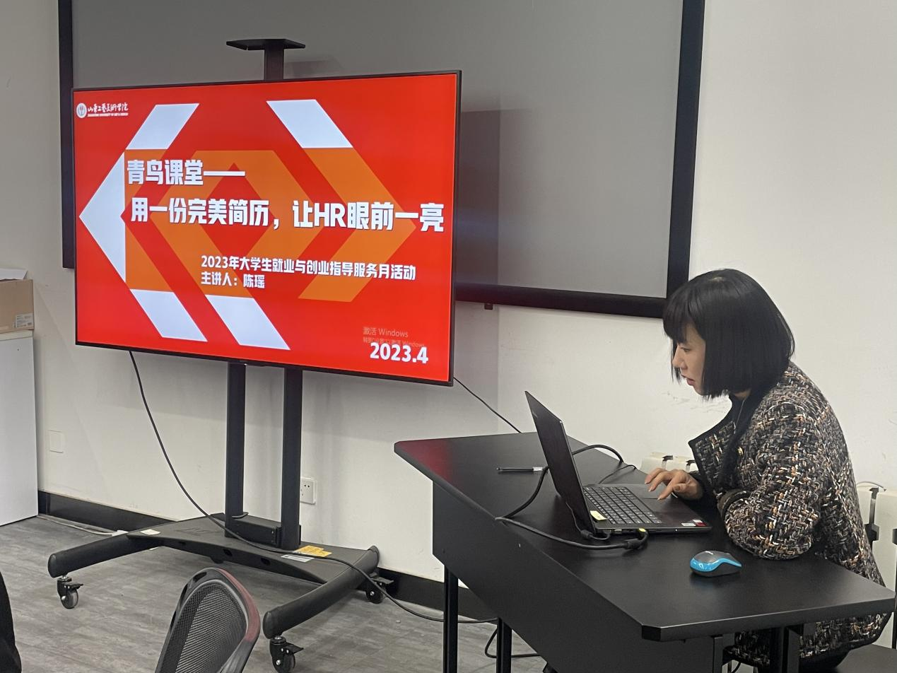 4月24日中午,视觉传达设计学院在学院多媒体会议室举办2023年大学生就业与创业指导服务月特色活动“青鸟课堂——简历制作专题讲座”。本次活动主题为“用一份完美简历,让HR眼前一亮”,由学院团总支书记、辅导员陈瑶老师主讲。