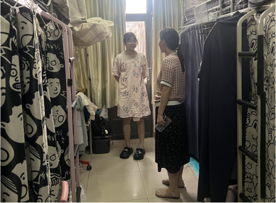 学院学工队伍深入学生公寓开展公寓安全卫生检查,了解学生近期的学习、生活情况,叮嘱同学们保持公寓卫生整洁,假期离校务必关窗、断电、锁门,严守公寓管理规定,平安文明离校返乡。
