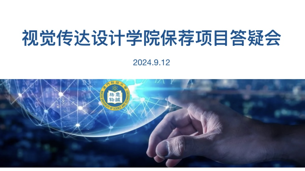 近日,学校发布了关于保荐优秀本科毕业生攻读澳门科技大学硕士研究生有关事项的通知。为了鼓励优秀本科毕业生继续深造,帮助有意向的同学解答项目申请中的困惑,视觉传达设计学院于9月12日举办澳门科技大学保荐项目分享答疑会。会议由视觉传达设计学院副院长张培源主持,国际交流中心常胜男老师参会并为同学们现场答疑。