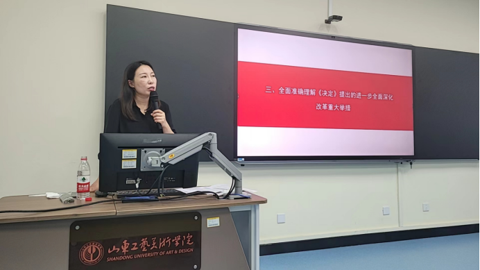为深入学习贯彻党的二十届三中全会精神,深刻领会习近平总书记关于全面深化改革的新思想、新观点、新论断,9月29日下午,学校宣讲团成员、马克思主义学院党总支副书记张晓宁为视觉传达设计学院党总支、建筑与景观设计学院党总支作了题为“增强全面深化改革的决心,扎实推进中国式现代化建设”党的二十届三中全会精神宣讲报告。