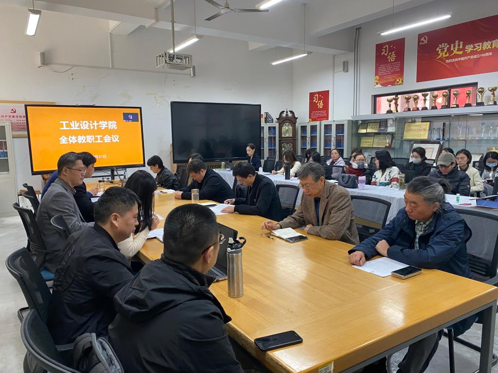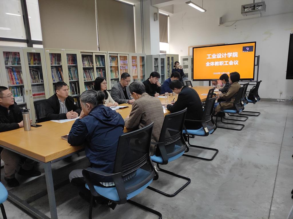 10月31日上午,工业设计学院召开全体教职工大会,学习交流党的二十大报告。党总支书记王玉杰主持会议。