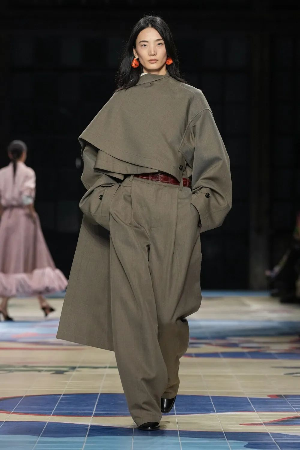 Matthieu Blazy为BOTTEGA VENETA2024春夏季时装秀设下的基调是“适合日常穿着的衣橱”,不是红毯专供,没有华丽高定,而是把形形色色的普通人装进这个小空间里。其简约时髦的时装质感,经得起考究的精湛工艺细节,包袋单品抢眼,每一季都有新的惊喜。T台上看似牛仔、法兰绒,甚至是棉布的造型,其实全部由皮革制成,通过繁复的工序,使得它们看上去更舒适、更随性、更质朴。