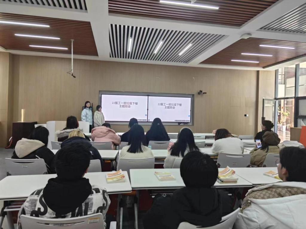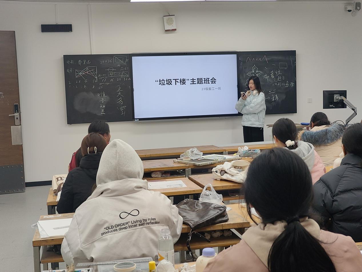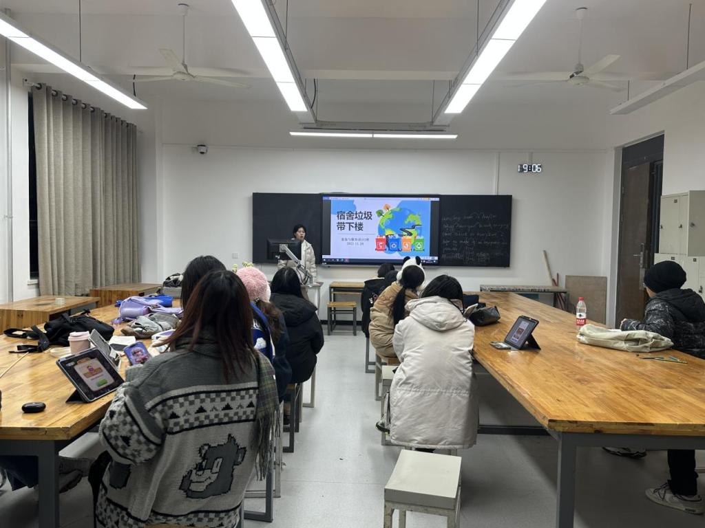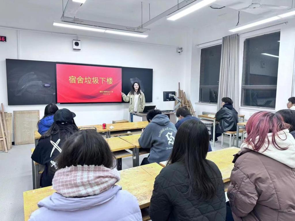 为保持宿舍环境干净整洁,进一步提高同学环境卫生意识,创建整洁文明且安全安全的卫生居住环境,2023年11月14日,服装学院组织2020到2023级各班召开垃圾下楼主题班会。