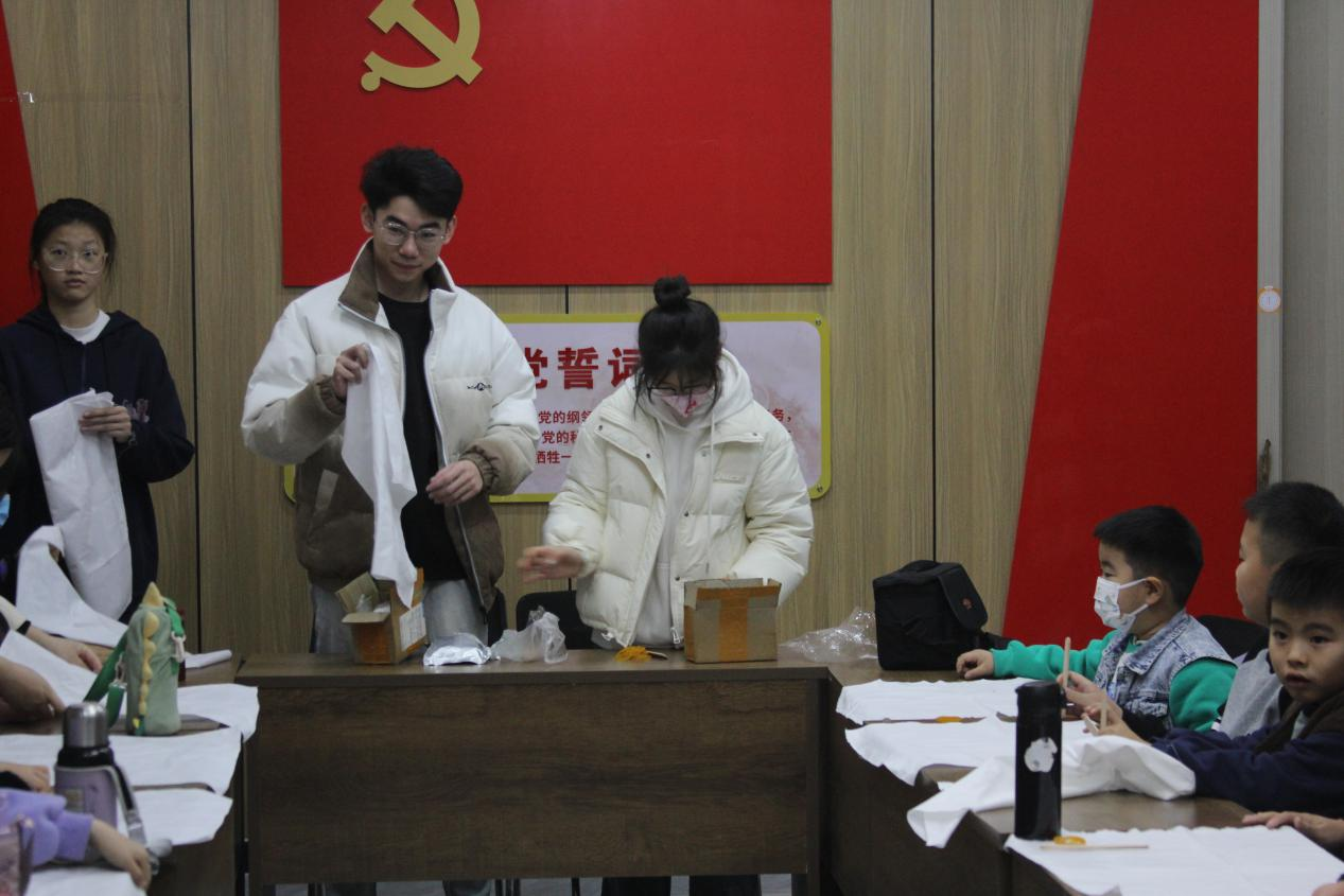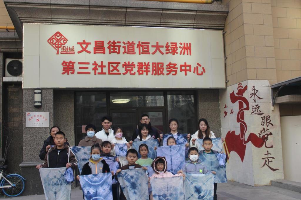为弘扬中华优秀传统文化,推动“百万大学生进社区”实践活动落实,12月9日,服装学院团总支组织“服”务于人民志愿服务队前往文昌街道恒大绿洲第三社区开展扎染教学活动。
