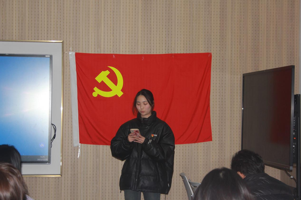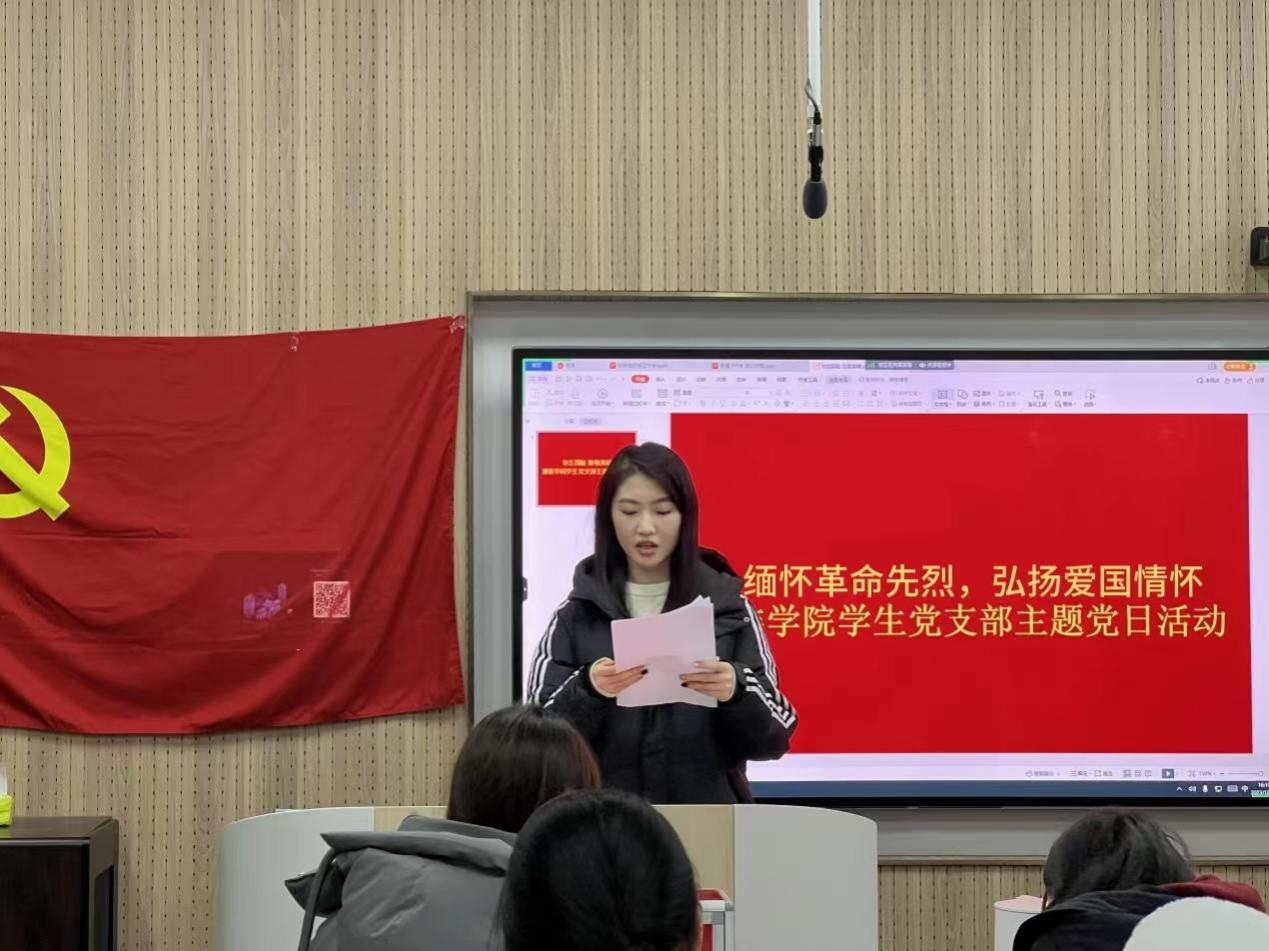 刘怡宏指出,12月是值得铭记的月份。12月13日是南京大屠杀死难者国家公祭日,它记载着一个民族最深重的苦难,标注人类文明史上最黑暗的一页。12月24日是长津湖战役胜利的纪念日,它承载着中国人对中国革命历史的铭记和传承,承载着对英雄烈士的尊重和怀念。这来之不易的和平背后,有无数英烈曾替我们负重前行,那些为了祖国和人民的平安奉献一生的人,我们永远不会忘,也永远不能忘、更不敢忘。随后,刘怡宏组织全体学生党员分享革命先烈的英雄事迹,通过学习英雄人物救国救民的伟大胸怀、赤胆忠心的优秀品质、英勇无畏的红色革命精神,来引导学生党员将自己的理想信念与祖国的前途、民族的命运、人民的期待紧密联系在一起,厚植爱国情怀,为党建功立业。