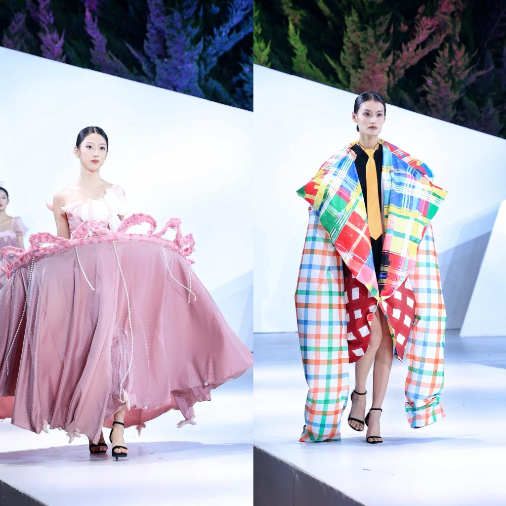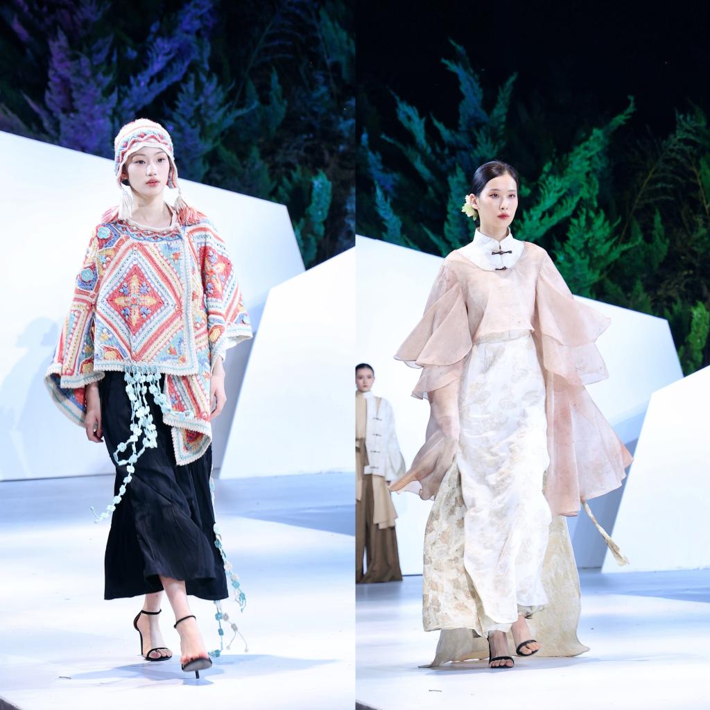 静态展分为传统服饰创新、创意时尚、可持续时尚三个板块,共计50套作品,设计作品兼顾艺术与实用,审美与功能并存,展现了毕业生的创意与才华,他们用扎实的专业基础和创新思维,将中国传统服饰文化、可持续时尚等内涵融入到设计作品中。