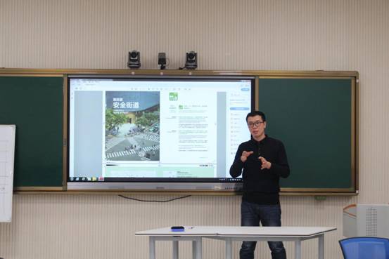 活动伊始,周广坤与同学们就街道设计方面进行了交流。接下来,周广坤播放了北大李迪华老师的演讲视频,从而引发学生的思考。随后,他向同学们讲解了上海市街道设计规划的相关细则并为同学们提供了一些街道设计规划方案。最后,他为同学们介绍了上海市的整体道路规划对山东省的启发,大家也发表自己对城市建设的相关意见。至此,此次讲座圆满结束。