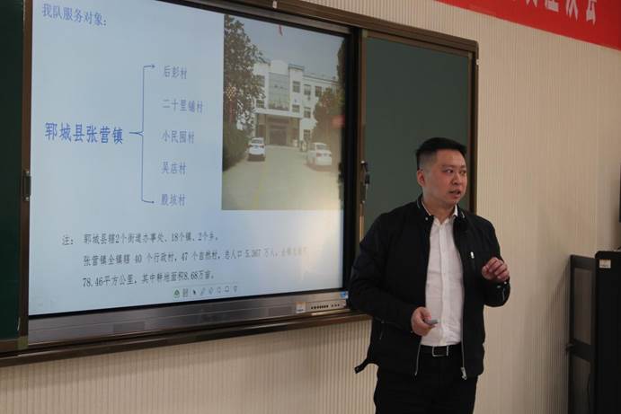 接下来,学院副院长沙重龙讲述了他作为“助力乡村振兴,打造齐鲁样板”服务工作者的初步工作情况及思考,以及对山东省美丽乡村建设目前面临的发展瓶颈、资金等问题的相关解决与策划思路,即对乡村进行基础条件分析及定位,以菏泽地区为例,以“一核、两坡、三溪、四线”为总体布局,率先解决矛盾问题。