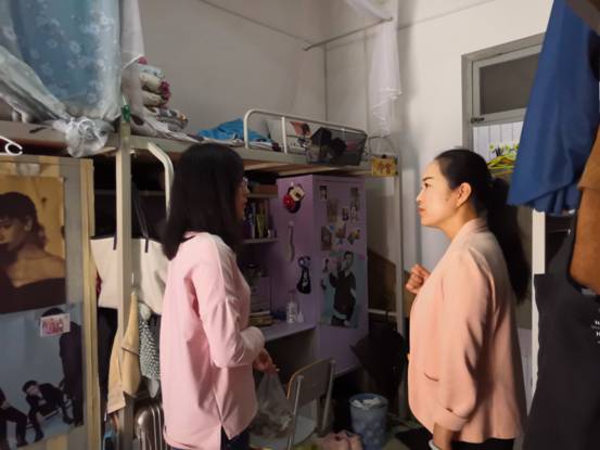 娄彦与辅导员老师首先来到了学院宿舍看望学院的贫困生。娄彦副书记与同学们进行交流,表达了学院对于同学们的关心,希望他们遇到困难能及时与学院老师沟通,也希望他们度过充实愉快的大学时光。与此同时,她将准备好的月饼送到了贫困生们的手中,并送上中秋祝福,同学们随即也向来访的老师们表示了感谢。