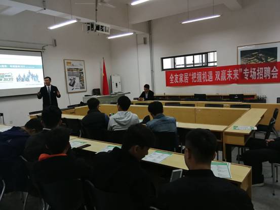 首先举办了全友家居专场招聘会。全友家居负责人对公司情况以及此次招聘岗位进行简单介绍,此次招聘会全友家居本着“灵活轮岗,多元培训”的宗旨在我系招募建筑设计人才。随后,全友家居培训老师又介绍了公司近几年设计的部分家具产品以及公司独有特色的产品生产线,并重点介绍了济南分公司的发展情况。同时又简述未来规划,让我系同学们对全友家居有了更为深刻的认识,最后,全友家居重点就不同职位的工资待遇及福利展开介绍,公司坚持以人为本,切实保障了员工的利益,这几点也使公司近几年得以迅速发展。最后,招聘人员对有意向同学组织了面试。