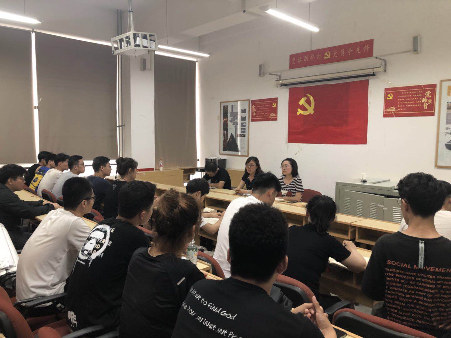 6月19日下午,建筑与景观设计学院辅导员王卫卫、褚丁庆于学院多媒体教室主持召开学生干部会议。