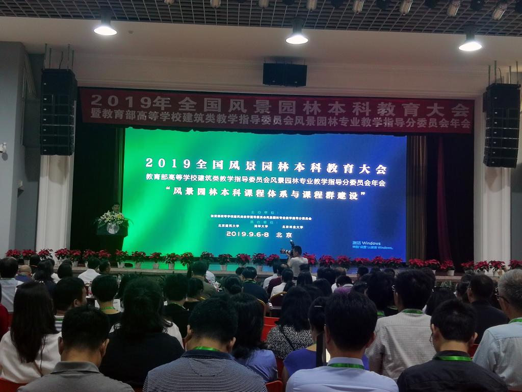 “2019全国风景园林本科教育大会暨风景园林本科课程体系与课程群建设”于2019年9月6日-8日在北京建筑大学隆重召开,来自全国近200所高校的700余名教师参加了年会。我院风景园林教研室主任曹灿景老师和景观设计教研室主任吕桂菊老师应邀参会。此次会议由教育部高等学校建筑类教学指导委员会风景园林专业教学指导分委员会主办,北京建筑大学、北京林业大学和清华大学联合承办。