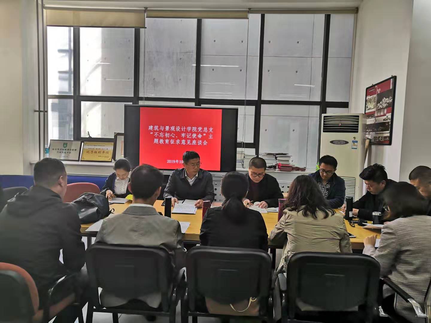 按照学院“不忘初心、牢记使命”主题教育工作计划,为查找存在的问题,做好调查研究,10月8日,建筑与景观设计学院党政领导班子主持召开征求意见座谈会。党总支书记张东深主持,领导班子成员党总支副书记娄彥、副院长胡英盛、党支部书记、教研室主任、部分教师代表参加。