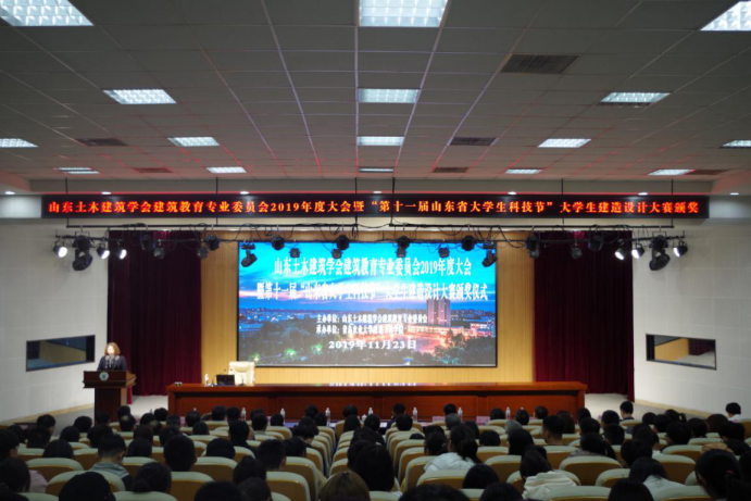 山东土木建筑学会建筑教育专业委员会2019年度大会暨“第十一届山东省大学生科技节”大学生建造设计大赛颁奖”于2019年11月23日上午在青岛农业大学学术会馆第二报告厅召开,我院建筑学教研室主任王洪书副主任王健老师参会。
