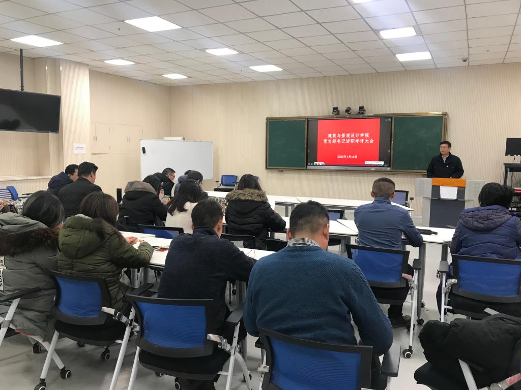 根据《2019年度党支部书记履行全面从严治党责任及抓基层党建工作述职工作方案》,1月10日上午,建筑与景观设计学院召开党支部书记述职考评大会,大会由党总支书记张东深主持,全体党员参加会议。