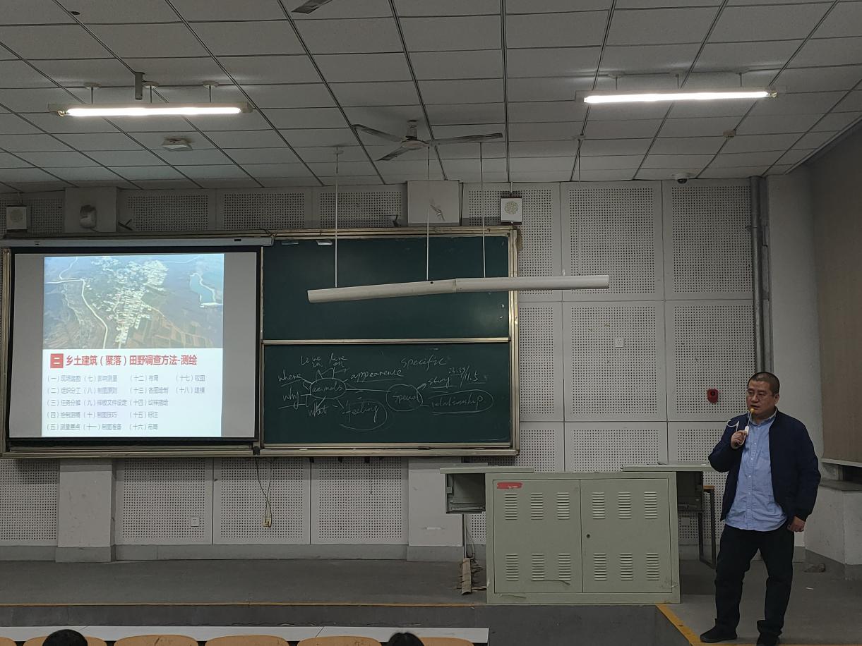 根据《建筑与景观设计学院党员教授、副教授、博士讲座制度》,为增强对专业的认识、提高学习兴趣和效率,建筑与景观设计学院于2020年 11月5日下午16:30,在综合楼六合堂举办了《乡土建筑(聚落) 田野调查方法》讲座,此次讲座由建筑与景观设计学院副院长胡英盛主讲,建筑与景观设计学院2020级全体新生参加。