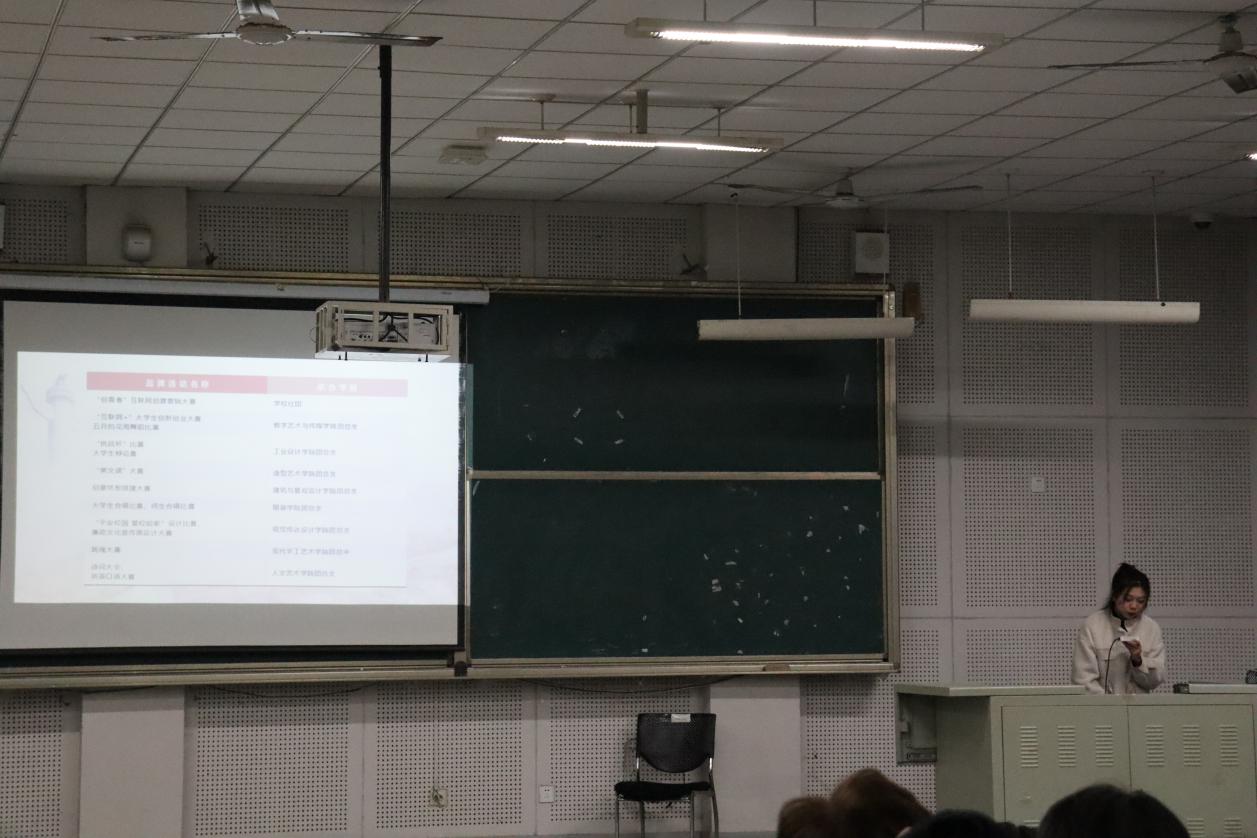 为加深同学们对校园文化级品牌活动的了解,丰富大学生活,提升综合素质,12月24日下午17:30,建筑与景观设计学院团总支开展了以校园文化及品牌活动为主题的宣讲活动。此次活动由建筑与景观设计学院学生会副主席刘静儒主讲,2020级全体同学积极参加。