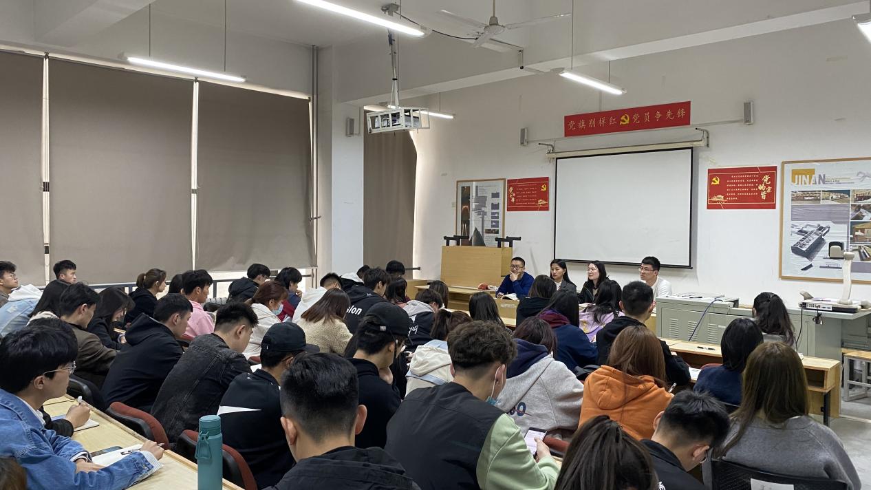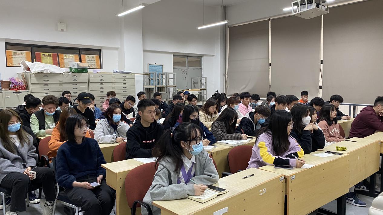 最后,陈铁对毕业生的就业工作进行了强调。他号召大家积极行动起来,多参与校园招聘会,先就业后择业,积极投递简历。有签约意向和实习的同学要及时上报,为后期报到证和档案派遣做准备。之后,对毕业年级班干部提出了要求,他要求大家在忙碌的学习、工作之余,做好最后一年的学生工作,站好最后一班岗。