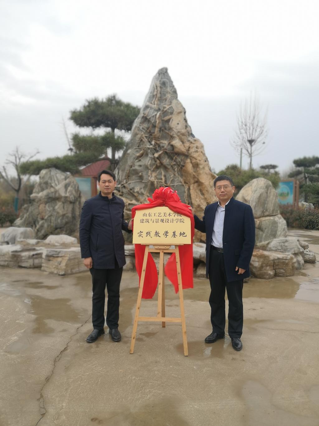 随后,双方代表在实践基地合作协议书上签字,建筑与景观设计学院张东深书记和兴润园林公司党支部书记王添辉交换了协议文件,张东深书记和兴润园林公司张忠峰董事长为实践教学基地揭牌。